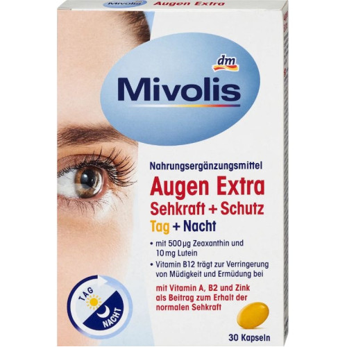 Теги: Комплекс вітамінів, для зору, Mivolis, - DAS gesunde PLUS Augen з Vitamin A, B2 та Zink Das Gesunde Plus 30 шт